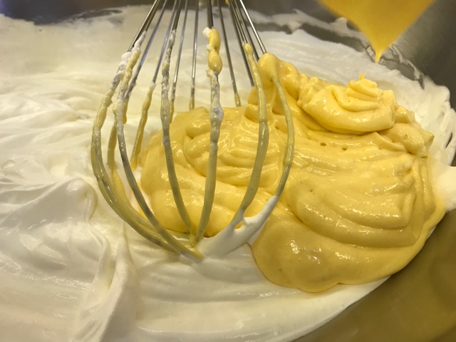 カスタードクリームにはイタリアンメレンゲをざっくりと合わせてから、