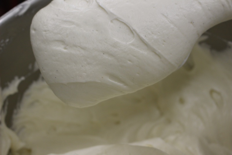 最後はゴムヘラでボウルの底と側面を丁寧に合わせて仕上げます。ふんわりとクリーミーに仕上がります。