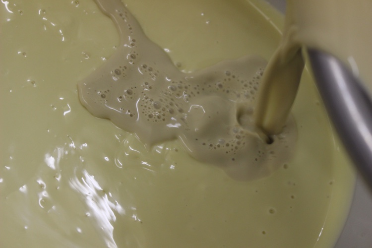 ゴムヘラを用いて、なめらかな質感と口どけをしっかりと意識しながら。というのが重要です。