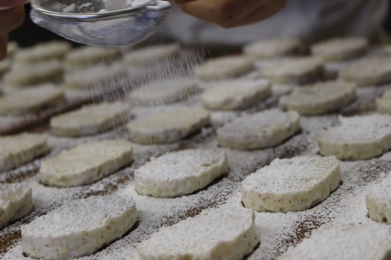 二度に分けて粉糖を振ることで、表面に糖の「膜」が形成され、サクッとした食感が生まれるのです。