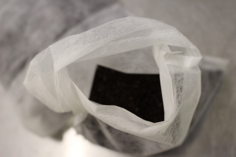 コーヒー豆はインドネシア、エチオピアのブレンドをグラインダーで挽いた物を、パックに入れます。